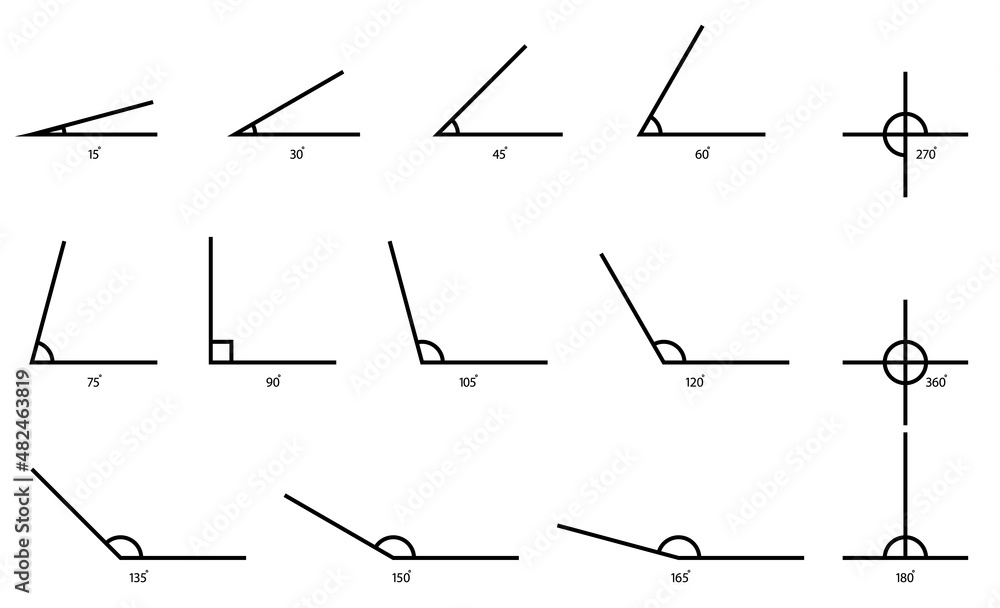 Angle With Different Degrees Icon Of Obtuse And Acute Angle Triangle With 90 45 120 180 And 60 Degree Symbol Of Measure And Math Vector Stock Vector Adobe Stock